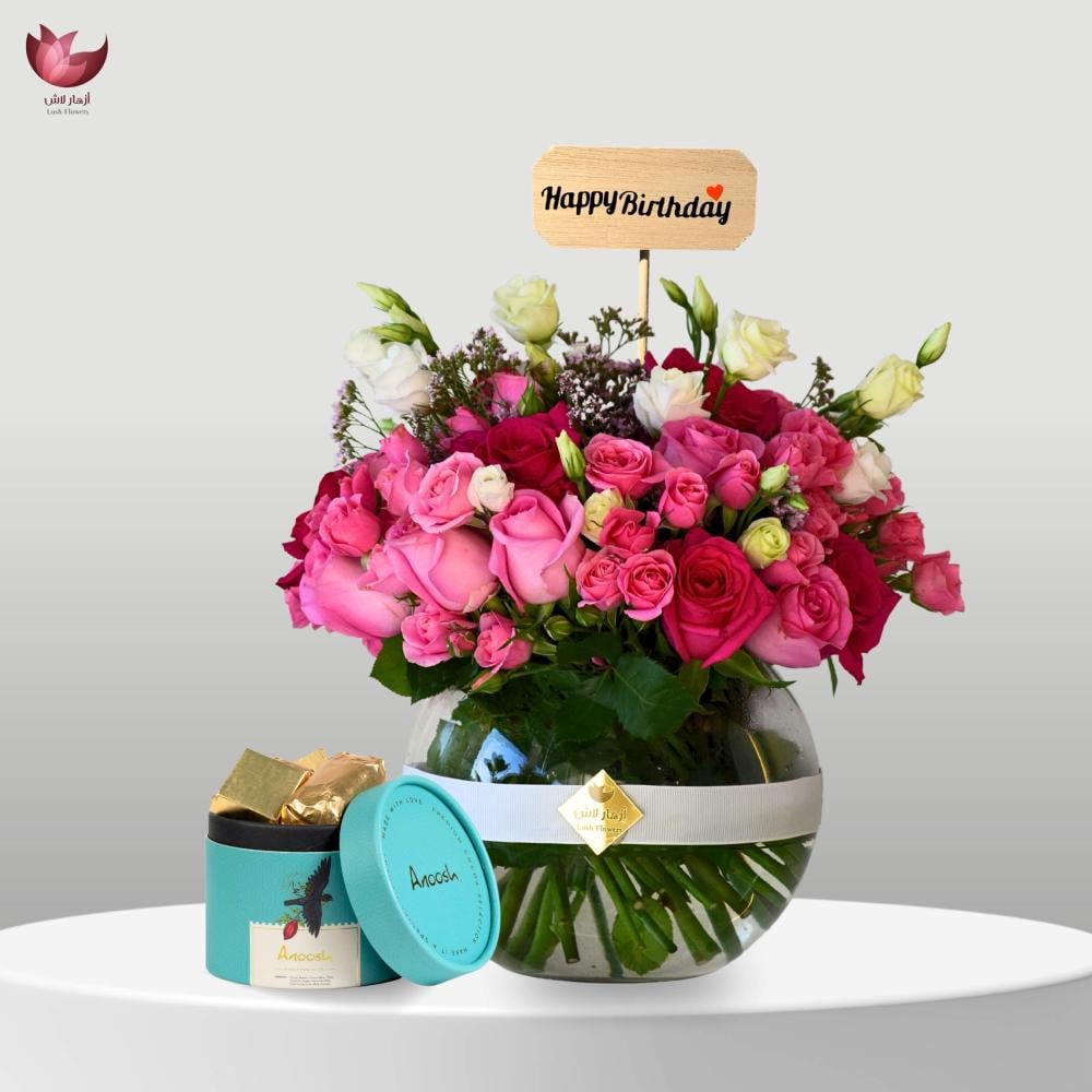 أهديهم من القلب مجموعة الورود الراقية و التي تجمع بين الجمال و الذوق العالي مع شوكلت أنوش الفاخر ، و خلي اللحظة لا تنسى !
