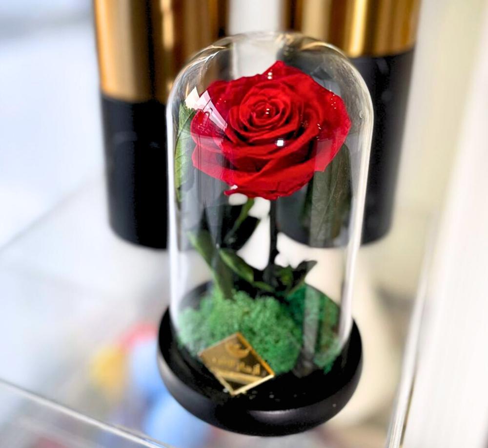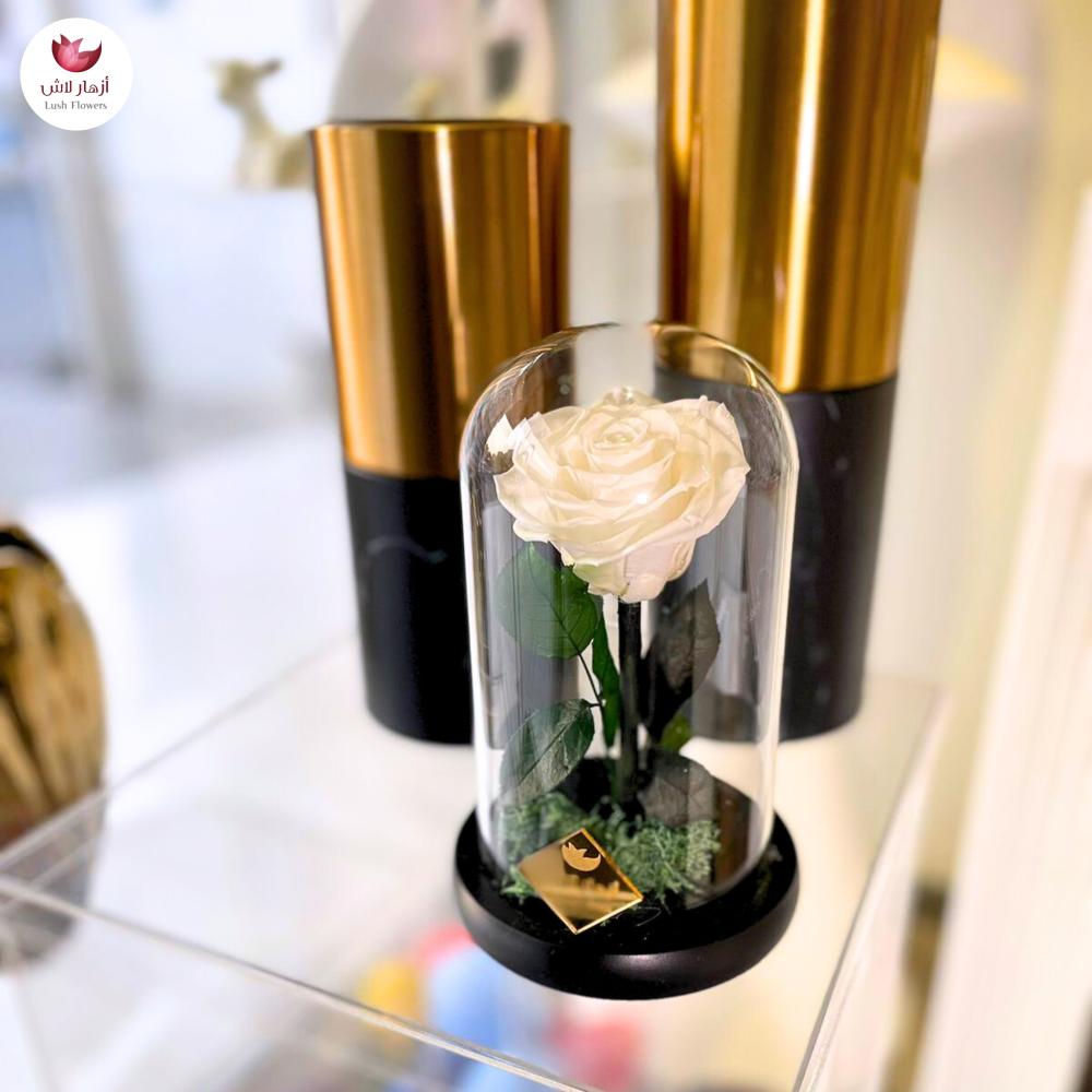 الوصف : زهرة الجوري الطبيعية يتم وضع عليها معالجات طبيعية لتدوم فترة اطول .