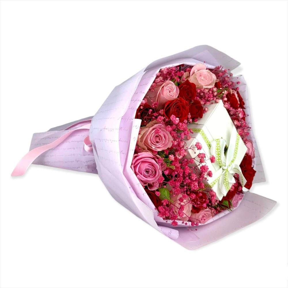 إنها الهدية المثالية لجميع المناسبات ، فاجئهم بهذه الباقة بتناسق اللون الزهري و الاحمر مع شوكولاته باتشي وشاهد الابتسامات وهي تظهر على وجوههم.