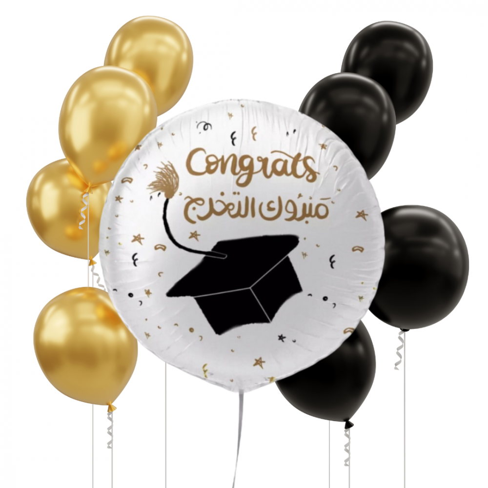 Contains 1 helium balloon, size (35 cm), with the phrase “Congratulations on Graduation.”